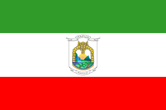the flag of Itapúa does not look the same. The stripes are not wavy, the white stripe is a bit larger (which is told in the description), and the coat-of-arms is in the middle of the white stripe [see above].