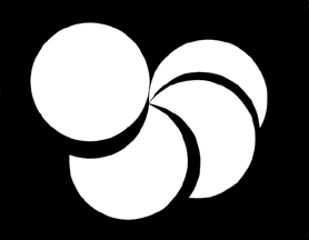 four white moonphase shapes on it: a disc and 3 progressively narrower crescents,
