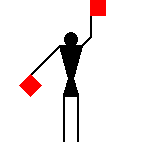 When receiving, the signaller stands at the “ready” position with the two flags crossed in front of the legs.