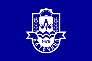 The flag of Batočina is blue with the white emblem of the municipality in the middle.