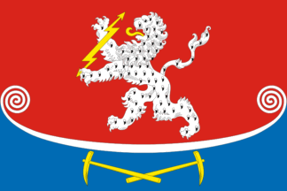 line; in the red field a rampant lion ermine bearing a yellow lightning bold; in