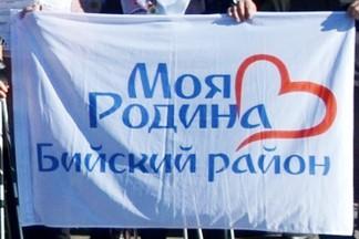 Biyskiy Rayon is one of the rayons of Altayskiy Kray. There are no official symbols, as far as I know. However, there is an unofficial flag in use, which as in case of the City of Biysk is the Russian flag with name of the rayon on it.