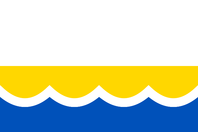 flag) is blue and is separated from the middle horizontal stripe by a white wavy
