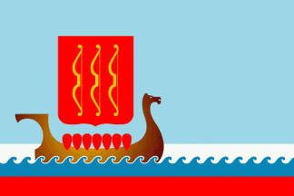 Flag reported by Pascal Gross on 22 Aug 2005 at http://adm.velikieluki.ru/symbol/detail.php?art_id=12. However that page now reports the flag above with 3 bows. I suspect that the flag with the ship was the one in use before April 2005