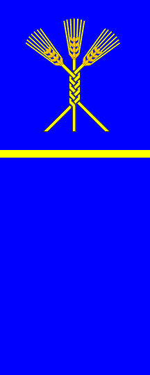 The flag of the municipality of Domžale shall be blue (colour, HKS 44K) with yellow (colour, HKS 5K) interwoven corn ears.