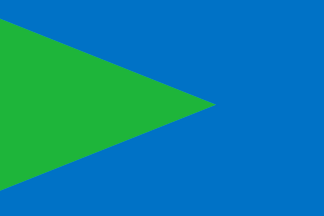 The flag is green with a blue triangle placed on hoist side of the flag.