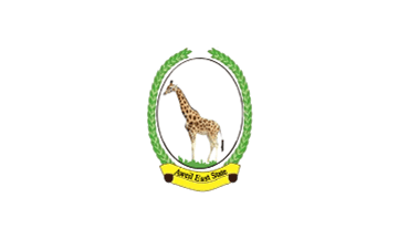 The state emblem was adopted by 2016. In a seal format, its inner circle depicts a gradient of blue (top) to white (bottom). Over this is an image of a giraffe standing over grass, which is a symbol of the environment. This inner circle is outlined by a thin orange-white-orange fimbriation. The outer ring is dark blue, with the name of the state in white capital letters at the top. At the bottom, the are the initials A.E.S, from which emerge on each side two branches, for prosperity, in white.