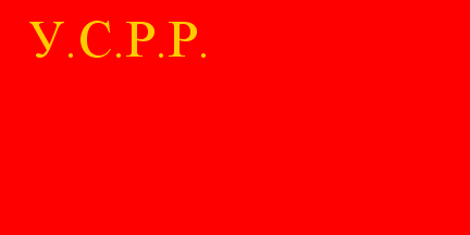 Red with in the upper hoist yellow cyrillic initials (URSR) in sanserif.