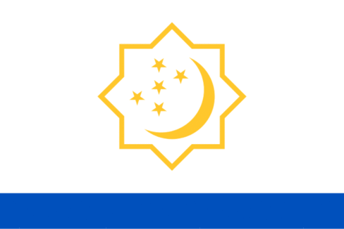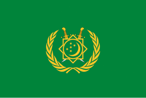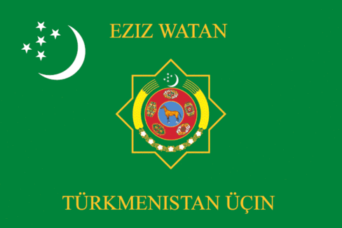 I found a picture with an flag, it’s green with state emblem in the center of the flag and with crescent and stars emblem placed in the canton. There is also an inscription along the upper and bottom edge of the flag: EZIZ WATAN TÜRKMENISTAN ÜÇIN - For our dear homeland Turkmenistan. The real interesting thing that the President holds this flag, but this is not the Presidential flag.