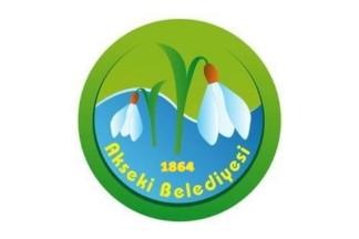 The flag of Akseki is white with the municipality's emblem in the middle. "Belediyesi" means "Municipality".