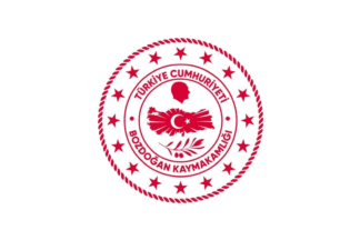 The flag of Bozdoğan (photo) is white with the municipality's emblem in the middle. "Belediyesi" means "Municipality".