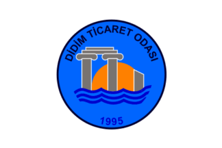 The flag of the Didim district government (photo) is white with the government's emblem. "T.C." stands for "Türkiye Cumhuriyeti", "Republic of Türkiye"; "Kaymakamlığı" means "District government".