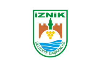 The flag of İznik (photo) is white with the municipality's emblem. "Belediye Başkanlığı" means "Municipality Presidency".