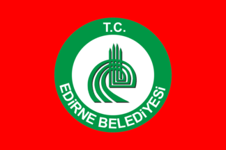 The earliest flag of Edirne (photo, photo, photo) was white with the municipality's former emblem placed on a white disk bordered green. "Belediyesi" means "Municipality"