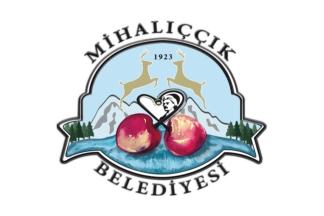 The flag of Mihalıççık is white with the municipality's emblem in the middle. "Belediyesi" means "Municipality".