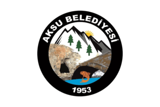 The flag of Aksu (photo) is white with the municipality's emblem in the middle. "Belediyesi" means "Municipality".