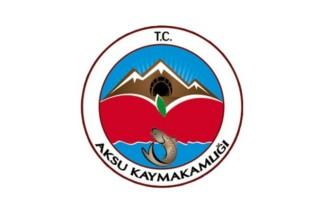 The flag of the Aksu district government (photo) is white with the government's emblem in the middle. "T.C." stands for "Türkiye Cumhuriyeti", "Republic of Türkiye"; "Kaymakamlığı" means "District government".