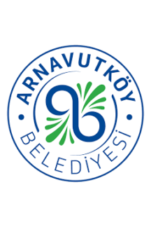 The flag of Arnavutköy is either white (photo) or divided blue-white, also used vertically (photo, image), with the municipality's emblem. "Belediyesi" means "Municipality".
