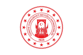 The flag of Beyoğlu is white (photo, or red (photo, photo) with the municipality's emblem. "Belediyesi" means "Municipality".