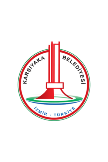 The flag of Karşıyaka (photo) is red with the municipality's emblem. The flag is also used vertically, white with the municipality's emblem (photo). "Belediyesi" means "Municipality".