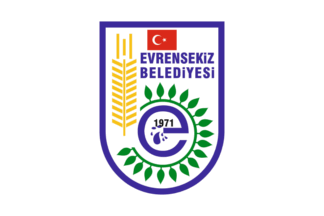 The flag of Evrensekiz (photo) is white with the municipality's emblem. "Belediyesi" means "Municipality".