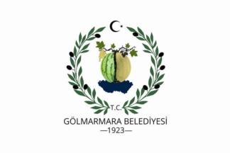 The flag of Gölmarmara (photo) is white with the municipality's current emblem in the center. "Belediyesi" means "Municipality"