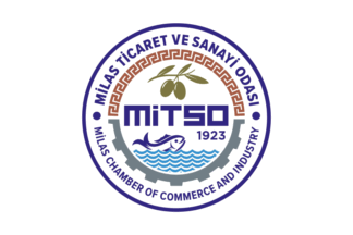 The flag of the Milas Chamber of Commerce and Industry (photo) is white with the organization's emblem.