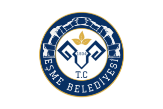 The flag of Eşme is white with the municipality's emblem in the middle. "Belediyesi" means "Municipality".