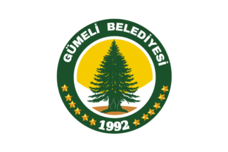 The flag of Gümeli (photo) is white with the municipality's emblem. "Belediyesi" means "Municipality".