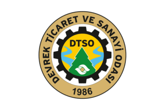 The flag of the Devrek Chamber of Commerce and Industry (photo, photo, photo) is white with the organization's emblem. The name of the organization is sometimes written in red capital letters beneath the logo (photo, photo, photo).