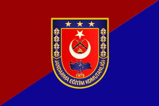 The flag of the Turkish Gendarmerie (photo) is diagonally divided red-blue with the Gendarmerie's coat of arms in the middle.