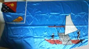 Styled as an ensign including the Papua New Guinea flag and a shell, included on a flag showing an outrigger canoe. Don't know whether the details of the canoe tell us more. However, that's not really the PNG ensign, and the whole thing has an impression of a naive artwork over it. Is this actually a flag?