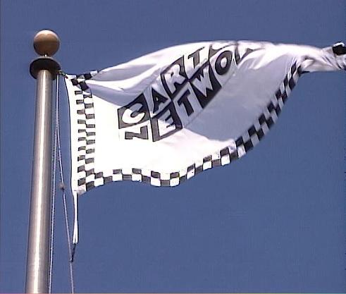 The former flag (1992-2004) was a horizontal white background with checkered borderline featuring the logo in the middle.