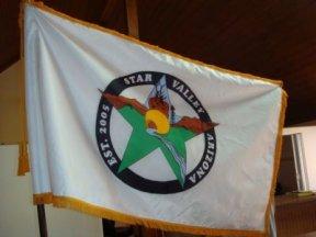 The flag of the Town of Star Valley, Arizona, is white with town seal on it. Photos of the flag thanks to: