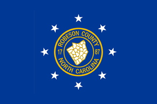 Robeson County is blue with the seal centered, surrounded by eight white stars.
