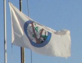 The flag is a white field with the town seal in the center.