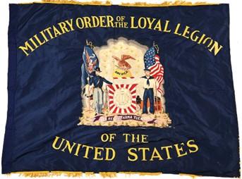 A blue-field flag of the "Military Order Of The Loyal Legion of the United States" (MOLLUS) is the first and oldest Civil War fraternal organization in the United States. It was founded on April 20, 1865, (less than a week following the assassination of Pres. Lincoln on April 15) by former Civil War commissioned officers. Its website at https://loyallegion.org
