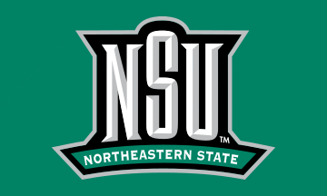 From what I can see at https://nsuok.edu/FutureStudents/default.aspx at the very bottom, the athletic logo flag seems to be the main flag used when the school needs to be represented to the public. The logo used can be seen on page 23 of https://offices.nsuok.edu/_resources/documents/3178_CM_Graphic%20Standards%20FINAL.pdf (Monogram alternate). There are banners for each of the departments the college offers; it the name of the department (in white) on a green background.