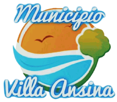 The Ansina logo is circular and stylized, depicting a sunset over which two birds are seen; at the bottom are waves especially indicating the Tacuarembó River where it is next to. To the side is a tree indicating the vegetation. At the top, Municipio; and at the bottom Villa Ansina; both are in white with a blue glow.