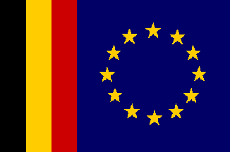| Flag: | A dark blue flag with twelve gold stars centered in the blue field; the first third of the flag along the hoist consisting of three equal bands (stripes) of black, gold and red. |