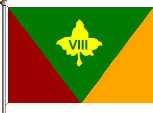 ivy leaf of the same. The association's flag is quartered of green (1 and 4) and