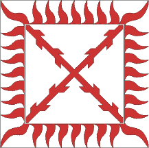 diagonal bars with small projections – a burgundy cross, cross raguly