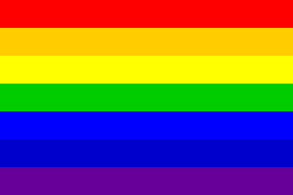 - 1) One of several flags showing the colours of the rainbow, with prominent examples being the gay