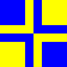 or flag, and which is divided along its horizontal and vertical centre-line with the tinctures of the