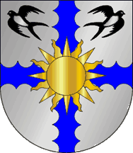 flag, canton or panel, but whose ends each are formed by three discs a trefoil or treflee