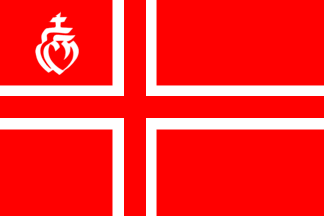 flag, canton or panel, whose arms are generally (but not exclusively) flat-ended but which are wider at