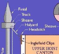 the Inglefield clip to be attached about five cm from the top, thus permitting the flag to be