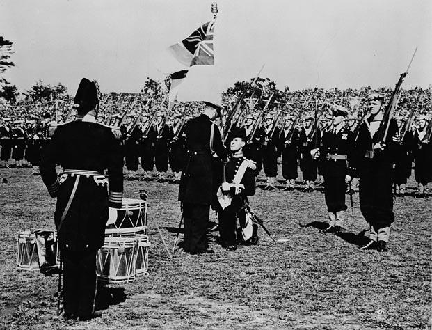 Presentation of a King's Colour to the Royal Navy by HM King George VI in 1939 (Wikimedia)