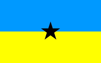 sizes of yellow and blue vertical fields and a "wide" black star pointing into
