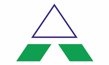 a white field with the its logo, a stylised 'A', in the centre in green, white and blue.